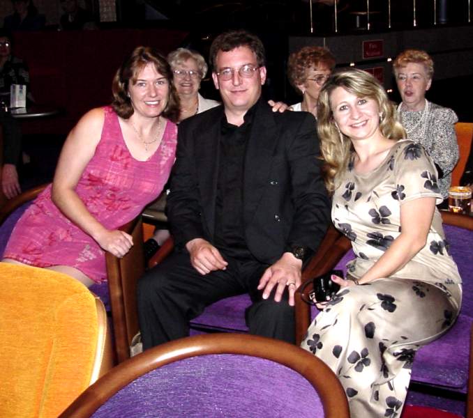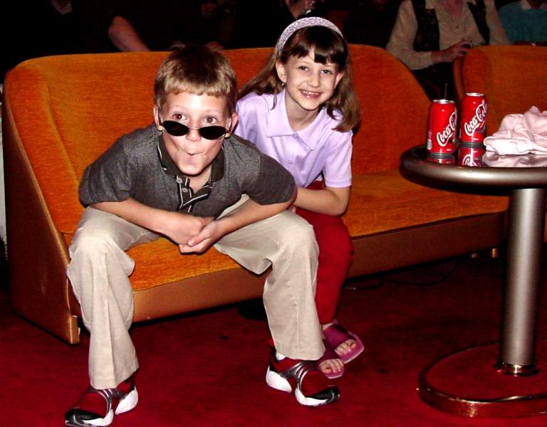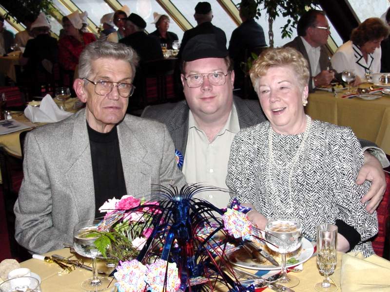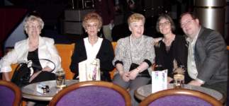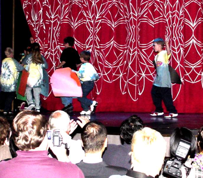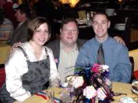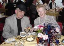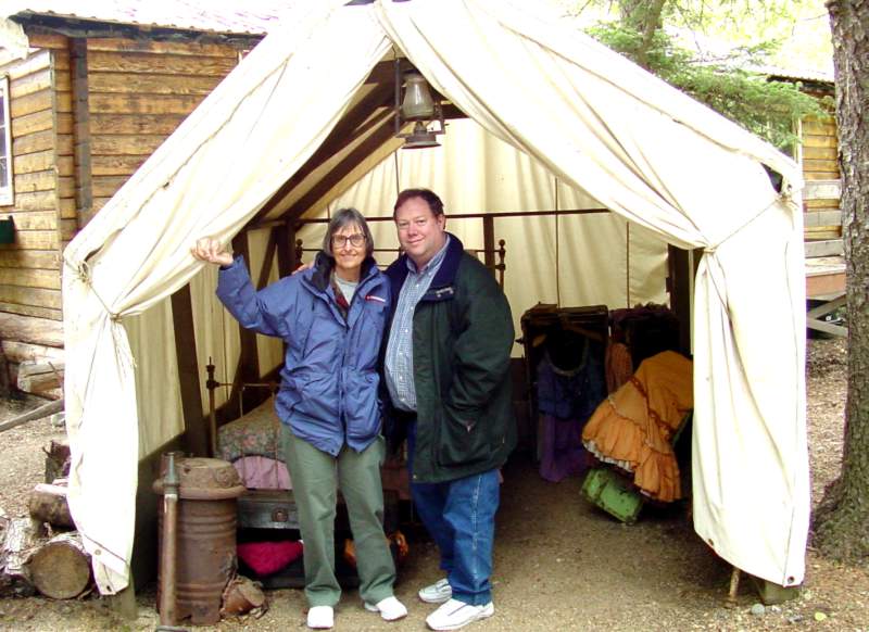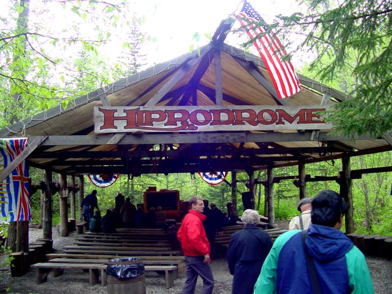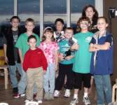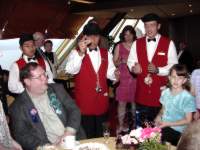 single support suspension bridge. The second one was at Liarsville. Do you know why they named Liarsville what the named it? We do. Here we are back in Skagway Following Dinner every night a special program was available. During the week they included 3 broadway like musical dance shows, a concert pianist, a juggler, and an illusionist. The kids always sat right up front! While cruising in Glacier Bay and watching Marjerie (the big white glacier) we were all impressed by the massivness of Marjerie and applauded each time ice broke off and crashed into the bay. Memorial Day (May 30th is the real Memorial Day) we had a big dinner party and celebrated Carl's birthday. Wednesday after the