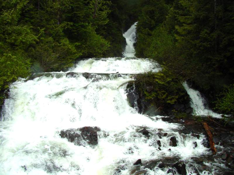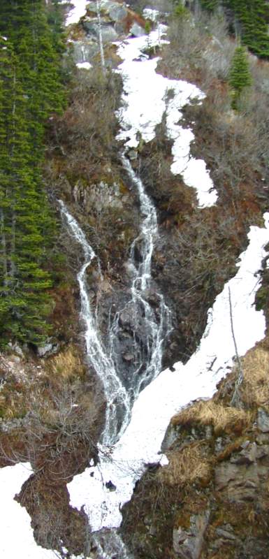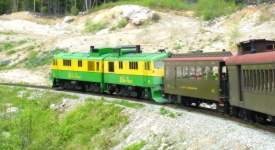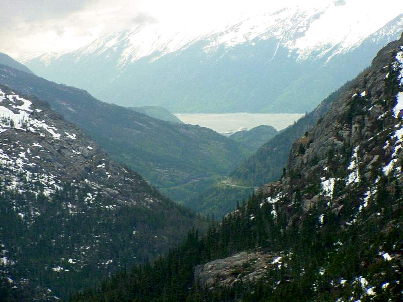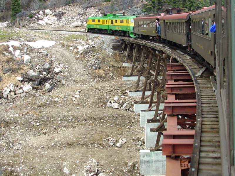 The White Pass railroad, a narrow gauge railway constructed to take minors into the gold fields was a pleasant ride, and gave us many views that would not have been visible otherwise. Mom nearly freaked when she saw the trestle above - but then she heard that we would not be using it. The railway had recently constructed a new "modern" bridge to take the train across the chasm.